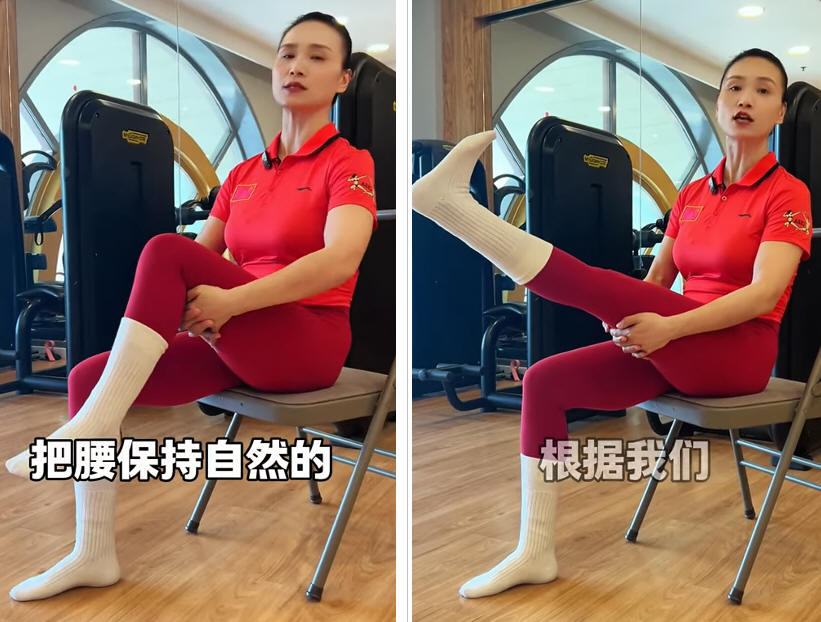 二、坐在椅子上(老年人最好是坐在有扶手的椅子上),两腿前伸,脚跟着地(亦可离地少许)。脚尖向内勾(朝向胸怀),然后脚尖向外绷直,如此来回做30下。 三、手扶椅背,一脚立地,另一脚弯腿,然后脚尖绷直前踢。左右各踢10下算一遍,共踢5遍。 四、单手扶椅背,一脚立地,另一脚的大腿抬至水平,小腿前后摆动,向后摆时小腿尽量靠近大腿,这样摆动20下。然后换一只脚做,同样摆动20下。 以上动作,不必全做,只挑选适合于自己的做。