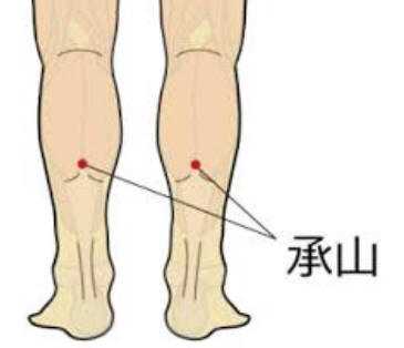 又,网上介绍下面这个方法,据说治疗小腿抽筋十分有效(我因为不再抽筋,故无法验证): 小腿抽筋时,用大拇指按承山穴,用力按下去,按个3秒钟,抽筋之痛就烟消云散了。 承山穴的位置:踮脚尖,脚跟往上提,小腿肚正中会出现人字形纹,其顶端之下的凹陷处即是(见下图)。 承山穴是治疗下肢循环障碍和肌肉痉挛的核心穴位。按揉承山穴还能够促进肠胃蠕动,改善便秘。
